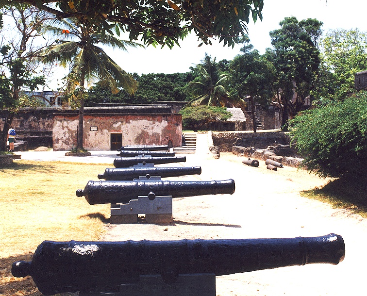 Vor dem Eingang zum Fort Jesus kommt man überraschender Weise an zwei aufgestellten deutschen Kanonen vorbei, die zum National Museums of Kenya gehören und von ihm auch gepflegt werden.