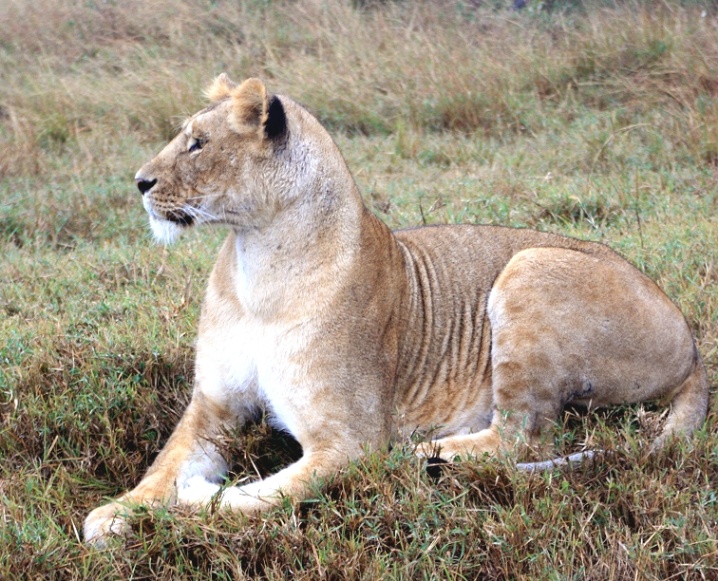 In seiner Forschungsstation rund 60 km südöstlich von Voi, führen er und seine Kollegen regelmäßig Untersuchungen durch. “ Wir entnehmen einem betäubtem mähnenlosen Löwen Haarproben, um sie anschließend genetisch zu untersuchen”, erläutert Kasiki. Unter den bis zu 300 Löwen des gesamten Schutzgebietes komme inzwischen die Mehrheit ohne den zotteligen Kopfschmuck daher. “ Ursprünglich dachte man, diese Löwen seihen nahe Verwandte der Höhlenlöwen”, erklärt Kasiki. Doch er wie auch ein parallel arbeitendes Wissenschaftlerteam aus den USA führen den mangelnden Haarwuchs eher auf klimatische Gründe zurück. Im Tsavo NP, der bekannt ist für seine Weitläufigkeit und Trockenheit, ist es nämlich sehr heiß. “ Die Männchen stehen dauernd unter Hitze- und Futterstress. Vermutlich wächst daher ihre Mähne erst gar nicht”, zitiert das Magazin “National Geographic Deutschland” die US- amerikanische Tsavo-Löwen-Forscherin Peyton West. “ In der Tat sind die meisten Löwen, die ihr Revier auf offenen Flächen haben, mähnenlos”, meint auch ihr kenianische Kollege Samuel Kasiki. Bei Beobachtungen der mähnenlosen Löwen hat sich herausgestellt, dass die Tiere aggressiver sind als ihre haarigeren Brüder.